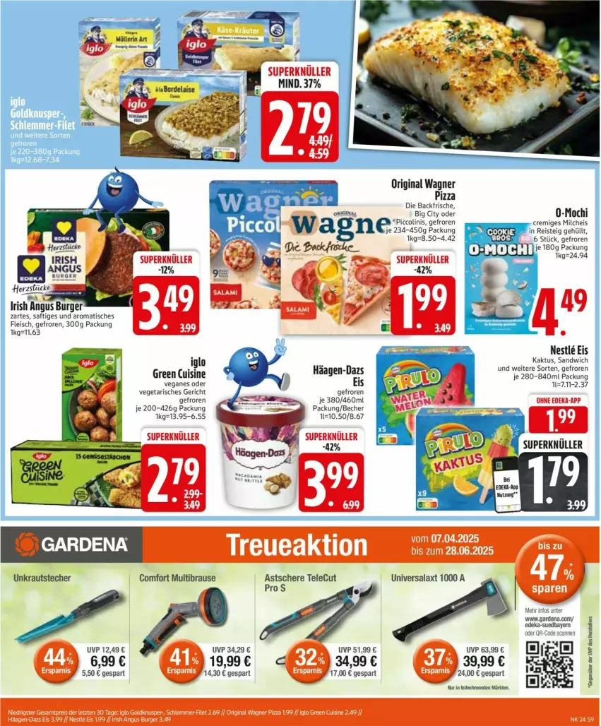 IE IC PR ERe) er Original Wagner Pizza Die Backfische, . Big City oder 0-Mochi e. ‘ Piccolins, ehe cremiges Milcheis je 234-450g Packung BEWERTE in Reisteig gehüllt, 9=8.50-4.42 BROS 6 Stück, gefroren []ie 1809 Packung 1kg=24.94 2. y a Pu ak - 2/4 , Irish Angus Burger 5 3 zartes, saftiges und aromatisches Fleisch, gefroren, 300g Packung # ® r Nestlö Eis iglo Kaktus, Sandwich Green Cuisine und weitere Sorten, gefroren je 280-840ml Packung Häagen-Dazs Eis 1=7.112.37 veganes oder vegetarisches Gericht gefroren je 200-426g Packung 1kg=13.95-6.55 gefroren je 380/460ml Packung/Becher 11=10.50/8.67 | ER: % N ! Pl, are Tr Unkrautstecher ‚Comfort Multibrause Astschere TeleCut | Universalaxt 1000 A l ProS$ 6; 621 | | Mehr Infos unter | Sa suedheyem i | oder OR-Code scannen | zum Fe 34,29€ UVP 51,99€ UVP 63,99 € 5 ) 99€ 4 ) 34,99 € ) 39,99 € } / n ’ Er up 700€ 24,00€ R 5; € en ha, gespart sy 17,00 € gespart | u gespart ! "ur in teilnchmenden Märkten.