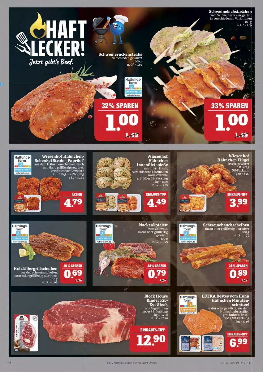 y 1 q aa 2 ) s la - x I LE ( \f % R! 5 i 12] Schweinerückensteaks Jetzt gibt's Beef. Haltungs- AHERTS TO ET ta form BI EN EITETCHE ELcy aus dem Hähnchenschenkelfleisch mit Haut, grillfertig gewürzt, = BE Tele A THE: haltungstorm.de ERW Pi Etat ua er:7" EN Pi j E 3 36 % SPAREN Holzfällergrillscheiben — aus der Schweineschulter, e natur oder grillfertig mariniert a 1008 1.03 MeRE SR) “ verschieden gewürzt HT Hähnchen Innenfiletspieße Joa URN TER ee tea u yhekelelain) > und Gewichte z. B.250 g SB-Packung 1kg = 17,99 n.G!=449 ae dd ge Nackenkotelett vom Schwein, natur oder grillfertig Fa WA 1008 ER ToN Ba ri 079 1er hir Rinder Rib- SCHITE1 EUEBETy TS aha 200 g SB-Packung 1kg = 64,50 n. G!= 12,90 'n. &. = niedrigster Gesamtpreis der letzten 30 Tage. Schweinelachstaschen vom Schweinerücken, gefüllt in verschiedenen Variationen 1008 er SR} N DA 33% SPAREN Wiesenhof Hähnchen Flügel frisch, gewürzt z.B. 482g u SB-Packung BE R 12:97) r a 399 Schweinebauchscheiben natur oder grillfertig mariniert 1008 n.G.!=139 te : a‘ ri IR Br EEE GERN Hähnchen Minuten- schnitzel _ natur oder gewürzt, ausdem 5 Hähnchenbrustälet, ». geschnitten, frisch $ \ 3508 a Tre U TEUER alle ld _MK_WEST_OST