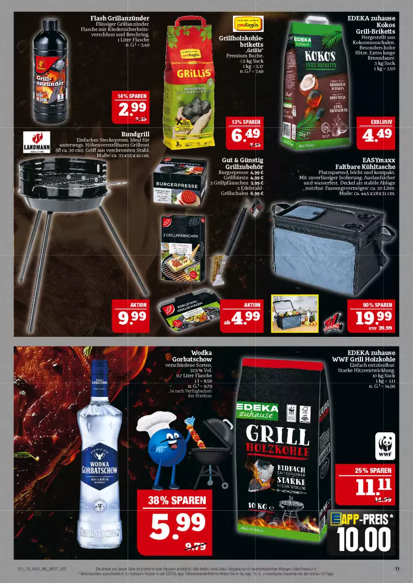 Flash Grillanzünder Flüssiger Grillanzünder. Flasche mit Kindersicherheits- verschluss und Brechring. URLS: n.G.1=349 14% SPAREN y/ D Er new Einfaches Stecksystem. Ideal für unterwegs. Höhenverstellbares Grillrost LANDMANN {® ca.30 cm). Griff aus verchromten Stahl. Maße: ca.33x55x41cm. Gorbatschow verschiedene Sorten, m Grillholzkohle- briketts „Grillis“ Premium Buche, Eu ET. TRY; y n.G.1= 749 er, ® PREMIUM BUCHE RTL ERLSLE 1 | | 13% SPAREN | CK Z LA Gut & Günstig Grillzubehör ED EL E EERELWFARCTCE Grillbürste 4,99 € 2 Grillpfännchen 5,99 € j Pe A Eje 016 Grillschalen 6,99 € 37,5% Vol. NARBE 11= 8,56 n.G.l= 979 i enach Verfügbarkeit des Marktes. Ir Tu Bahr Er EDEKA zuhause GG [en Jm 17-080 IR EEE) Kokosnussschalen. Besonders hohe Hitze. Extra lange Brenndauer. 3kg Sack I CSA) NEDER eg : KU NN) 1: ITEN CH RD SCHALEN BESomERh LIUaU Uri Pi AL 449 EASYmaxx Faltbare Kühltasche Platzsparend, leicht und kompakt. Mit zuverlässiger Isolierung. Auslaufsicher und wasserfest. Deckel als stabile Ablage nutzbar. Fassungsvermögen: ca.30 Liter. Maße: ca. 445x28x31cm. a El 1939 uve 39.99 EDEKA zuhause m... WWF Grill Holzkohle Einfach entzündbar. Starke Hitzeentwicklung. 10 kg Sack TEA n. G.l= 14,99 EINFACH a) TzÜ KERFN ri 14.33 ut dnieht in allen Häusern erhältlich / Alle Artikel ohne Deko / Abgabe nur in haushaltsüblichen Mengen /Alle Preise in €, ;s+ Nutzer in der EDEKA-App. Teilnehmende Märkte finden Sie in der App. 'n. G. = niedrigster Gesamtpreis der letzten 30 Tage.