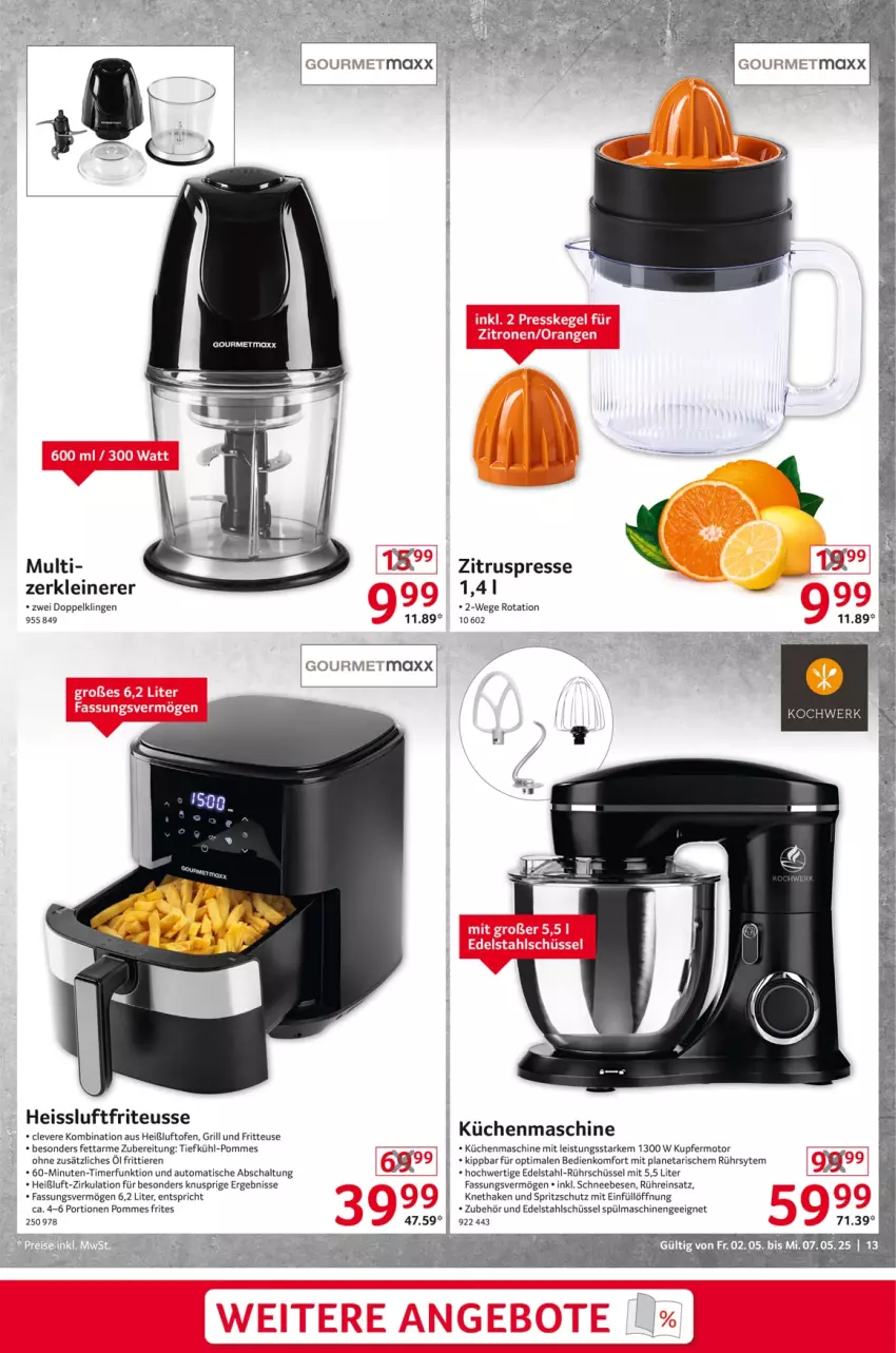 FT .. d si N . « y, Bo * % X » . Mn NEN 7 ER AR 2a Bez B i , Lie; ar er a 22 A Br EEE GOURMETMAXX Multi- zerkleinerer * zwei Doppelklingen 955 849 aus PIE RER Y a GOURMETMOXX E& f 11.89” GOURMETMOXX Heissluftfriteusse « clevere Kombination aus Heißluftofen, Grill und Fritteuse « besonders fettarme Zubereitung: Tiefkühl-Pommes ohne zusätzliches Öl frittieren * 60-Minuten-Timerfunktion und automatische Abschaltung * Heißluft-Zirkulation für besonders knusprige Ergebnisse » Fassungsvermögen 6,2 Liter, entspricht ca. 4-6 Portionen Pommes frites 250 978 - = > u 7 [2127 ,9 g en Auyı 47.59” 4 Tr EEE N Zitruspresse 1,41 — » 2-Wege Rotation 10 602 TELTEE En S j Pen 60 Et 5 A KOCHWERK rl Küchenmaschine * Küchenmaschine mit leistungsstarkem 1300 W Kupfermotor * kippbar für optimalen Bedienkomfort mit planetarischem Rührsytem * hochwertige Edelstahl-Rührschüssel mit 5,5 Liter Fassungsvermögen ® inkl. Schneebesen, Rühreinsatz, Knethaken und Spritzschutz mit Einfüllöffnung * Zubehör und Edelstahlschüssel spülmaschinengeeignet 922 443 g 71.39° BR RER TERRA PEHGE)