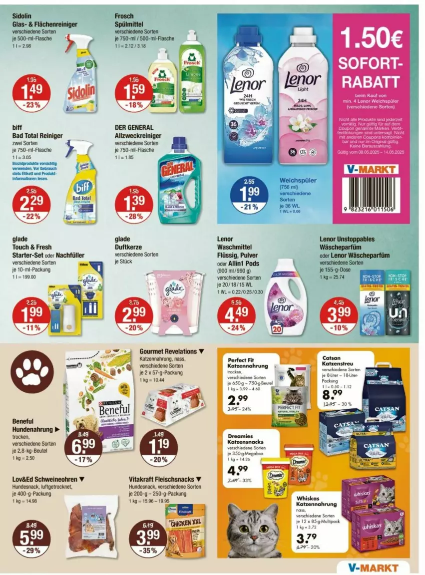 Sidolin Frosch Glas- & Flächenreiniger Spülmittel verschiedene Sorten verschiedene Sorten ie500-mi-Flasce " je 750-mi / 500-ml-Flasche 11=2.98 ( 11= 212/318 =O\ 1) ” 149 i L N) et biff DER GENERAL Bad Total nos Allzweckreiniger zwei Sorten verschiedene Sorten a je 750-mi-Flasche je 750-mi-Flasche \ 11=3.05 Blozidprodukte vorsichtig verwenden. Vor Gebrauch stets Etikett und Produkt. informationen lesen. glade Touch & Fresh Duftkerze Starter-Set oder Nachfüller verschiedene Sorten verschiedene Sorten -Q je Stück & . = je 10-ml-Packung 11= 199.00 Lov&Ed Schweineohren W Vitakraft Fleischsnacks W Hundesnack, luftgetrocknet, Hundesnack, verschiedene Sorten je 400-g-Packung je 200-9 - 250-g-Packung 1K9=1498 1Kg= 15.96-19.95 { u 1.90€ SOFORT- Lenor Waschmittel Wäscheparfüm Flüssig, Pulver oder Lenor Wäscheparfüm oder Allini Pods N en Sorten (900 mi/990 je 155-9- verschiedene . em 1K9=25.74 je 20/18/15 WL f 1 WL = 0.22/0.25/0.30 Perfect Fit Katzennahrung ; trocken, verschiedene Sorten ® ie 650g - 750g.Beutel je &iter - 18.iter Packung > E 395 24% Dreamies Katzensnacks verschiedene Sorten ie 3509 Megabox Tig= 1a 42° Whiskas Katzennahrung nass verschiedene Sorten ie 12 2 pack 149-372 ARTE 52 2 37° 3 479 20% V-MARKT