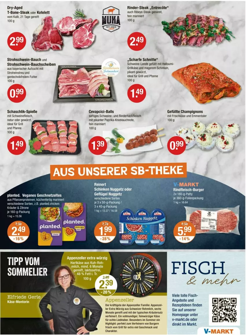 Rinder-Steak „Entrecöte“ auch Ribeye-Steak genannt, Dry-Aged T-Bone-Steak oder Kotelett vom Kalb, 21 Tage gereift . fein mariniert 1009 van 1009 F N \ERRr, N Strohschwein-Bauch und „Scharfe Schnitte“ Strohschwein-Bauchscheiben Schweine-Lende gefüllt mit Halloumi- R aus bayerischer Aufzucht mit Grillkäse und magerem Schinken, = Dan Stroheinstreu und pikant gewürzt, z Rz R gentechnikfreiem Futter ideal für Grill und Pfanne A ars E 1009 1009 z ii Schaschlik-Spieße Cevapcici-Balls Gefüllte Champignons mit Schweinefleisch, saftiges Schweine- und Rinderhackfleisch mit Frischkäse und Emmentaler natur oder gewürzt, mit pikanter Paprika-Knoblauchnote, 1009 ideal für Grill fein mariniert und Pfanne 100g - 1009 a planted. Veganes Geschnetzeltes aus Pflanzenproteinen, küchenfertig mariniert DE TE Hr A BECKER TEC Kräuter & Zitrone Een T ; 1 kg = 15.56 planted. TIPP VOM N 1a H ld N Pete LEONE BIETE TR TR T3r2 verschiedene Sorten je 3 x 50-g-Packung / EN 1kg=13.27/1658 , / / [DD Schinken Nuggetz Der kräftigste der Appenzeller Familie: Appenzel- ler Extra Würzig aus Schweizer Rohmilch, sechs Monate gereift und mit der typischen Kräutersulz. verfeinert. Ein vollmundiger, feinwürziger Käse für echte Liebhaber. Besonders im Sommer ein Highlight: perfekt zum Verfeinern von Burgern frisch vom Grill für extra viel Geschmack und Charakter. LU7N 7.65 Rindfleisch-Burger Pre 7 ERLITT 1kg= 16.64 Viele tolle Fisch- Angebote und Rezeptideen finden Sie auf unserer Homepage unter v-markt.de oder direkt im Markt.